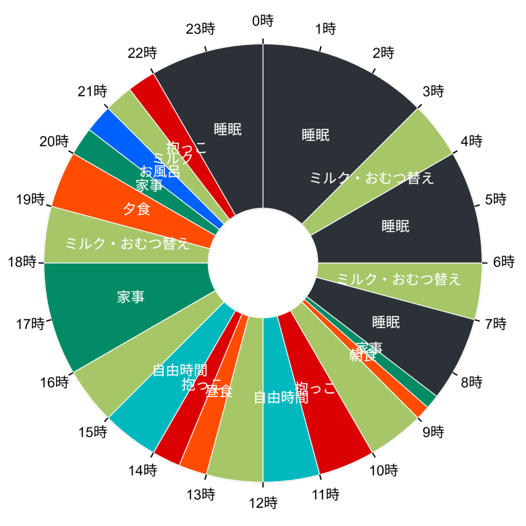 グラフの黄緑色のところは全て「ミルク・おむつ替え」です。